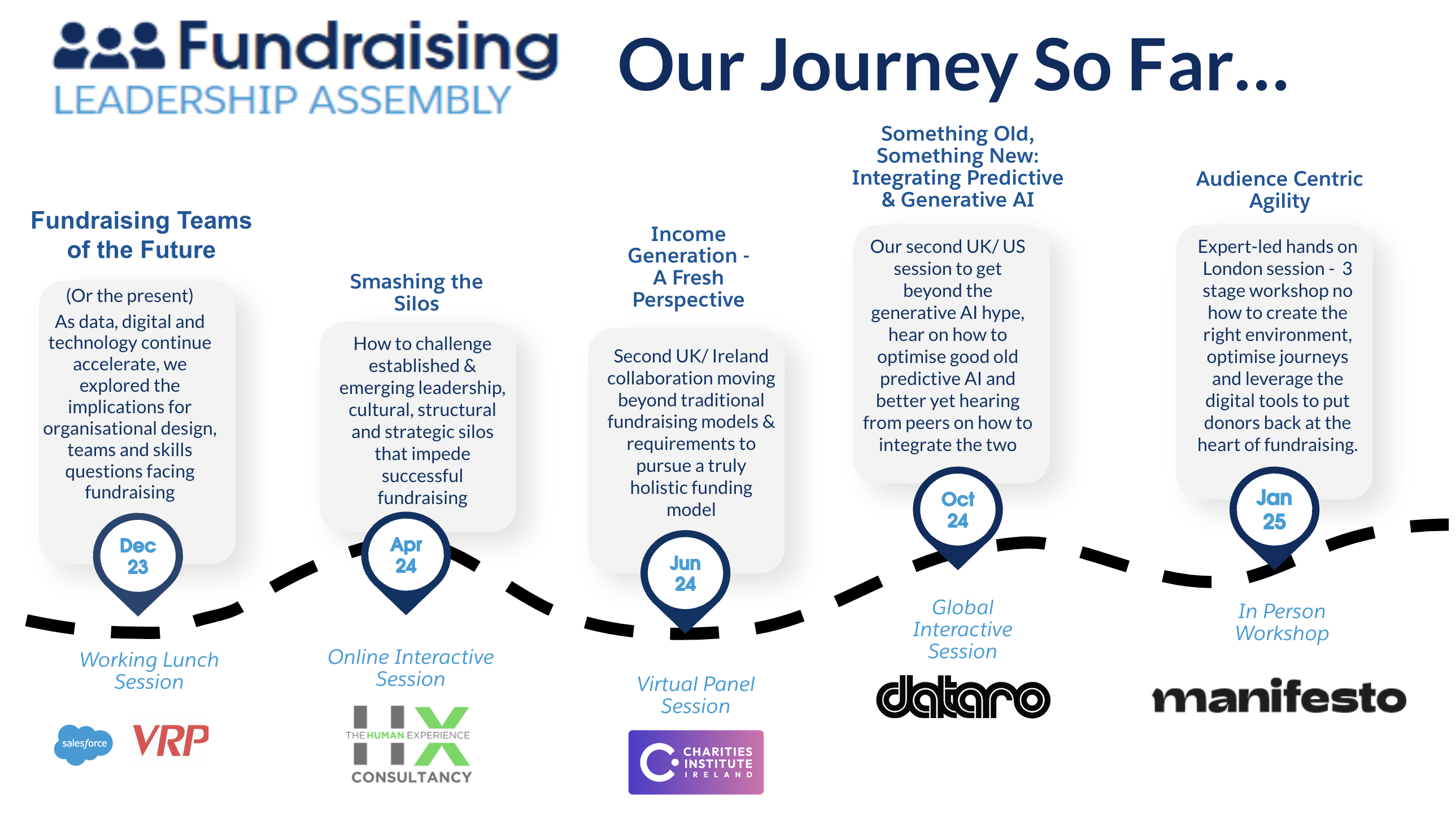 Our content is member-led and while some topics benefit from expert speakers. If you have a passion project or topic you’d like to see covered by yourself or a peer, get in touch with jane@fundraisingleadershipassembly.com