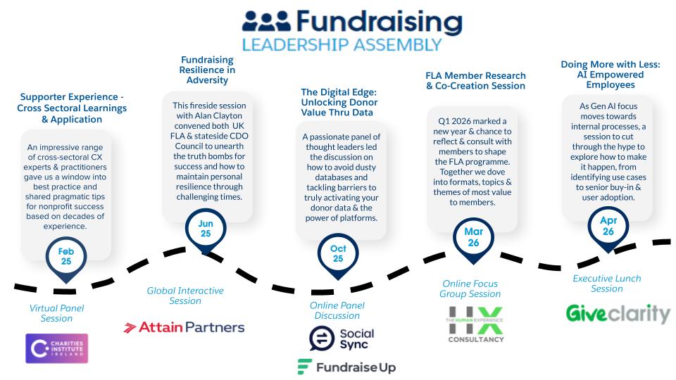 The FLA is a network of UK senior fundraising leaders offering peers a safe place to explore ideas & exchange knowledge. Together we explore key strategic challenges through series of virtual and in-person events. Content is member-driven & emphasis is on interactivity, openness & group catharsis. Sessions are free to attend, thanks to collaboration with corporate partners.